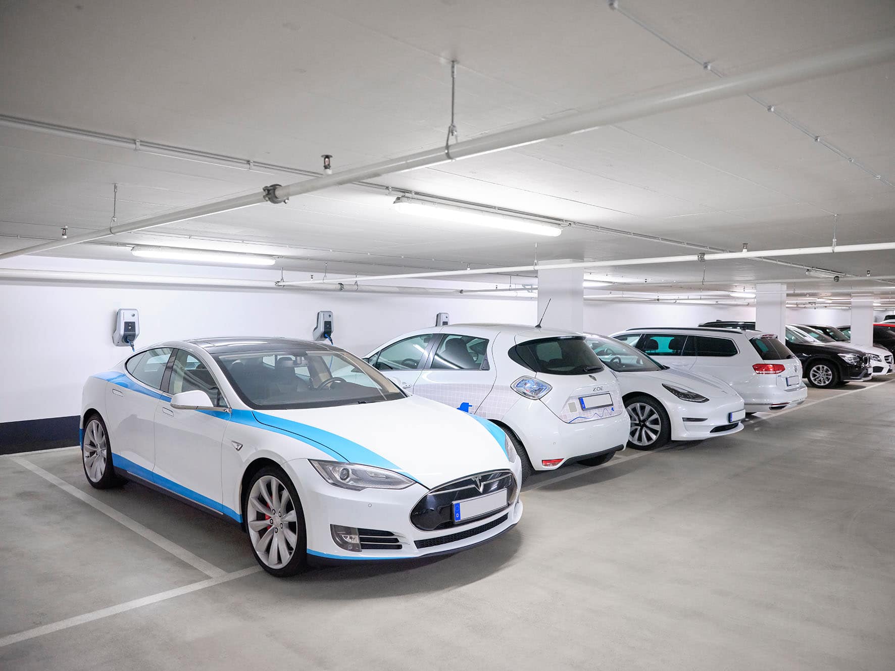 - vähintään kolme normaalitehoista latauspistettä, jos pysäköintipaikkoja on yli 100.